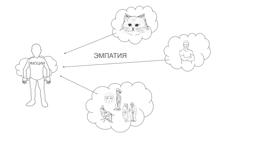 Смысловое наполнение термина «ЭМПАТИЯ» заключается в следующем - один человек осознанно, и с разной степенью силы, или понимает или чувствует те эмоции, которые наблюдает у других людей. С разной степенью силы означает шкалу от варианта эмпатического слушания до варианта полного погружения в эмоциональное состояние другого человека. Главной отличительной особенностью ЭМПАТИИ является то, что человек осознает, что эти эмоции не являются его собственными, а исходят от другого человека, или других людей.