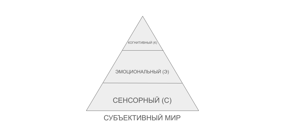 Таким образом мы видим своеобразную иерархию субъективного мира человека, где когнитивность является следствием эмоциональности, а эмоциональность является следствием сенсорности.